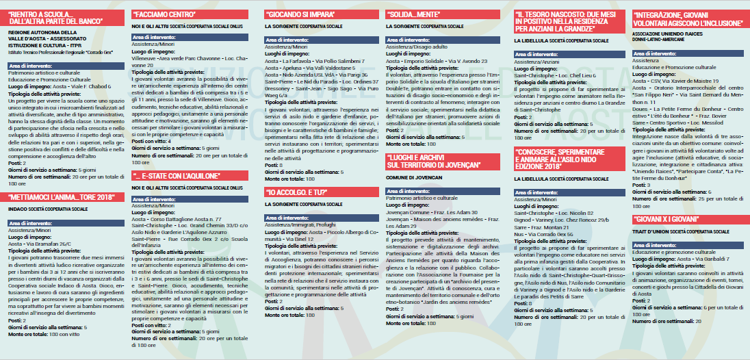 Progetti di servizio civile regionale “Due Mesi in Positivo” edizione 2018